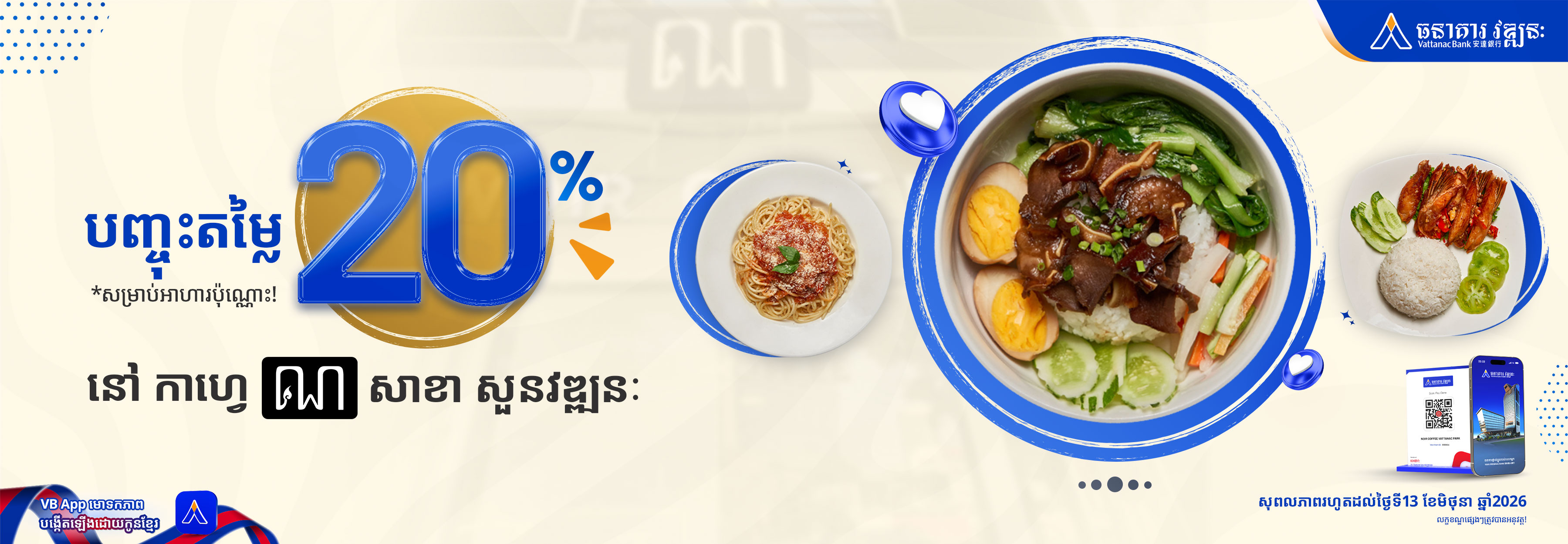 Simple, convenient, and rewarding — just pay with Vattanac Bank and savor more for less.
