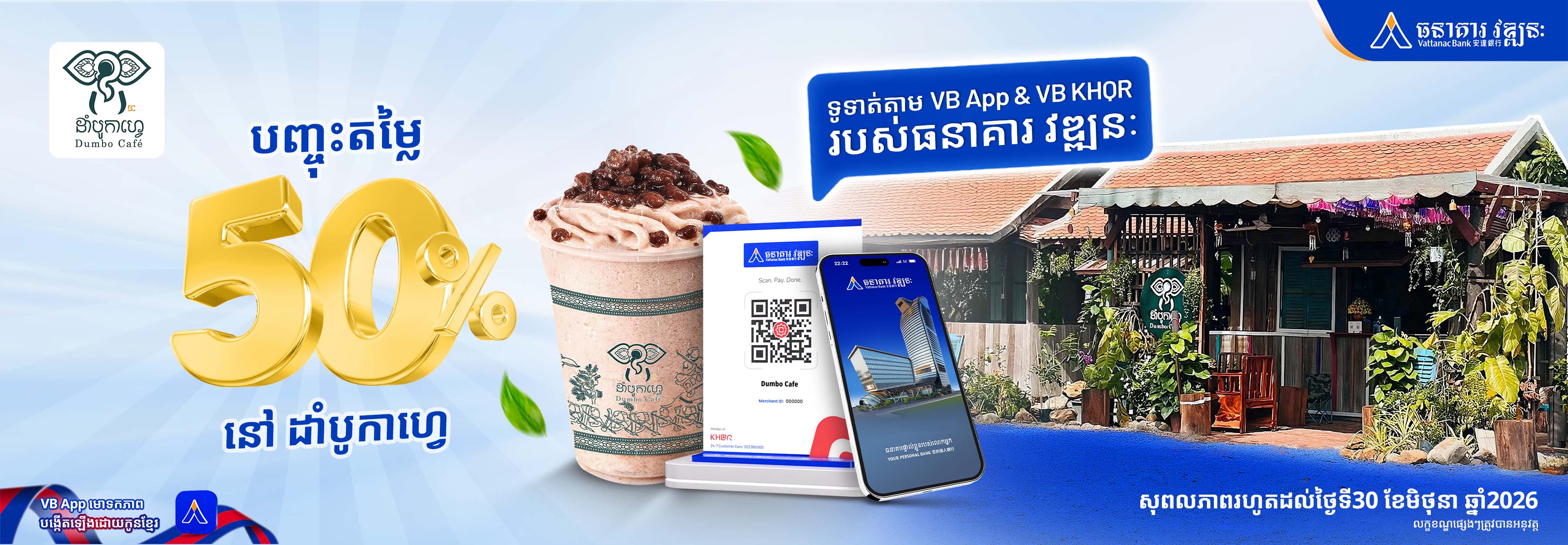 - Vattanac Bank and Dumbo Coffee reserve the right to amend or terminate the promotion without prior notice