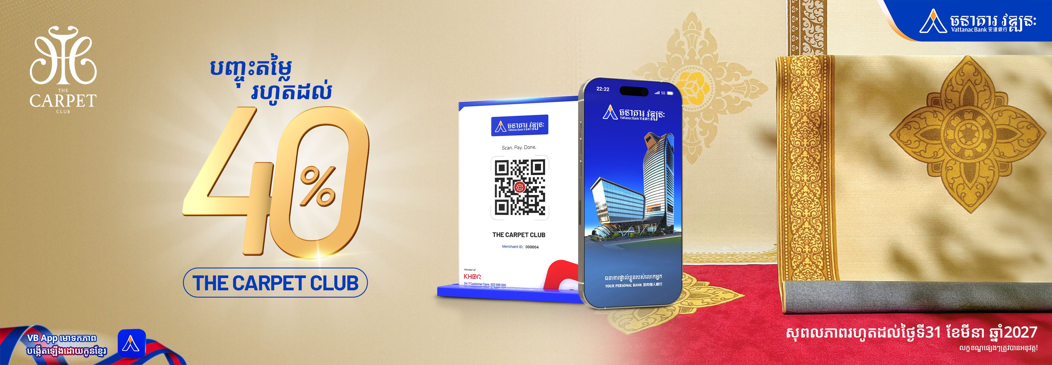 • Vattanac Bank and THE CARPET CLUB reserve the right to amend the terms and conditions without prior notice.